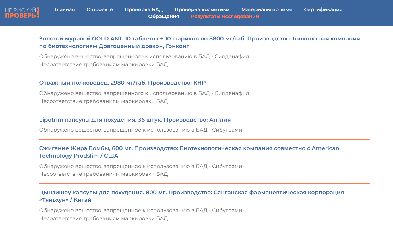 В рамках проекта проводятся независимые закупки и лабораторные исследования продукции по заявкам потребителей. Проверяются не только показатели безопасности продукции, но и соответствие заявленным составам.